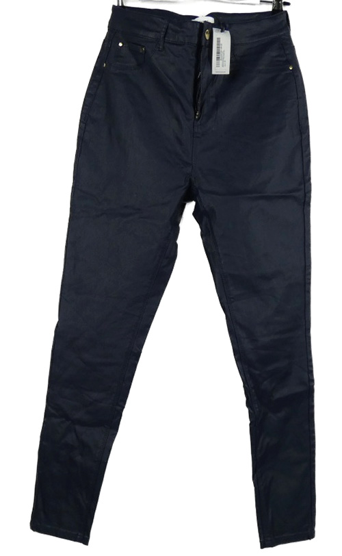 Nové - Dámske tmavomodré koženkové skinny nohavice s vysokým pasom Coast