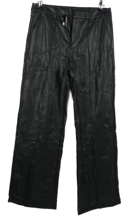 Dámske čierne koženkové široké nohavice s pukmi Peacocks