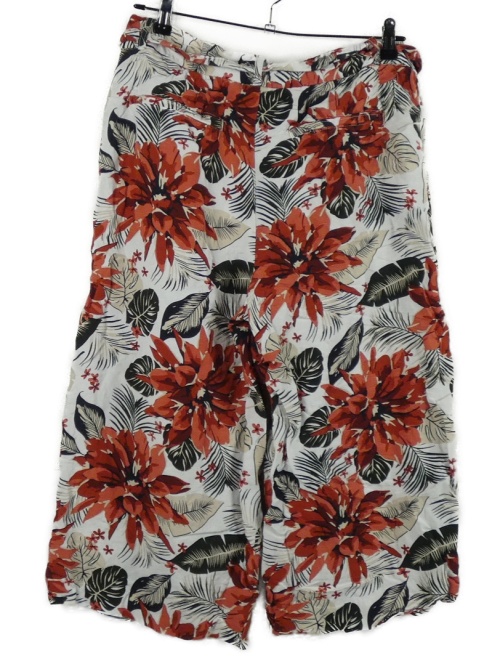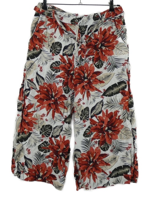 • Dámske bielo-karmínové kvetované ľanové culottes nohavice s opaskom Esmara