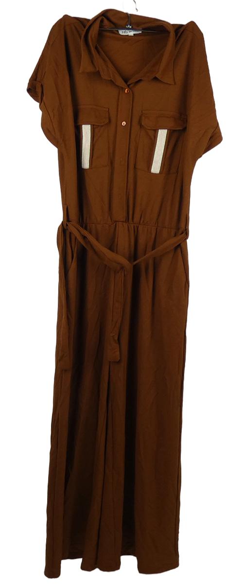 Dámsky hnedý palazzo nohavicový overal s opaskom