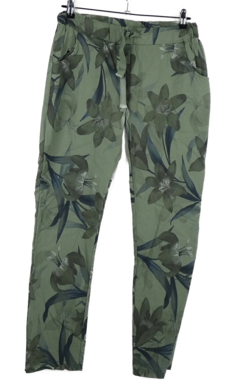 Dámske khaki kvetované teplákové nohavice