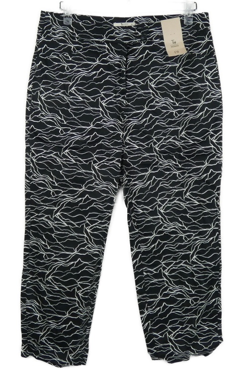 Nové - Dámske čierno-biele vzorované capri nohavice TU