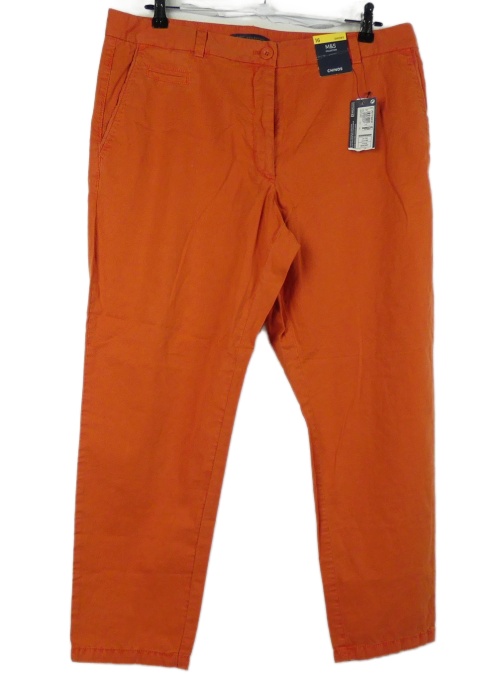 Nové - Dámske tehlově červené plátenné chino nohavice M&S
