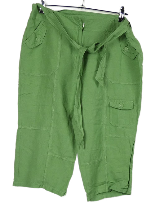 Dámske svetlozelené capri ľanové nohavice s opaskom Principles
