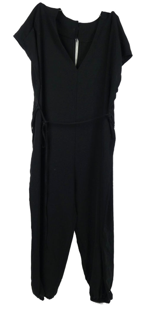 Dámsky čierny nohavicový overal s provázkem v pase