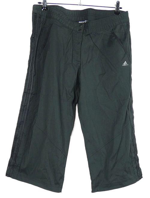 Dámske tmavosivé šušťákové funkčné capri nohavice s pruhmi Adidas