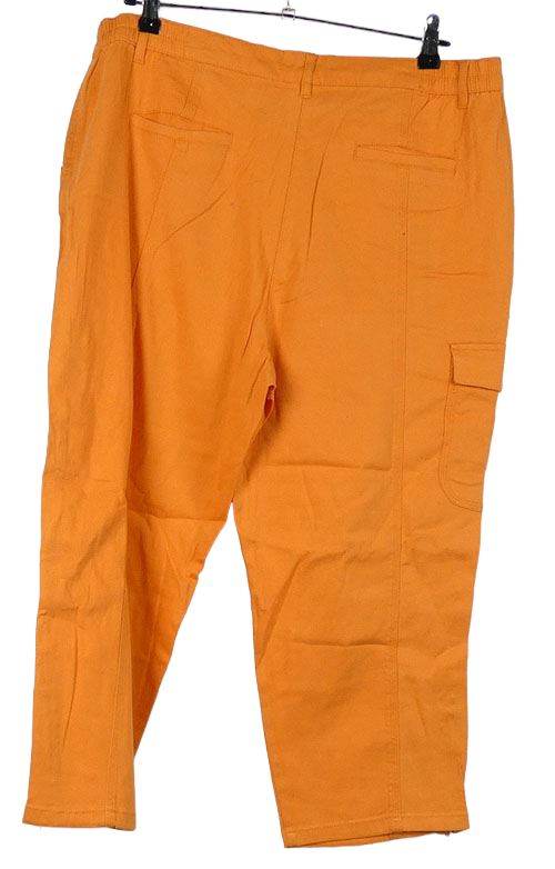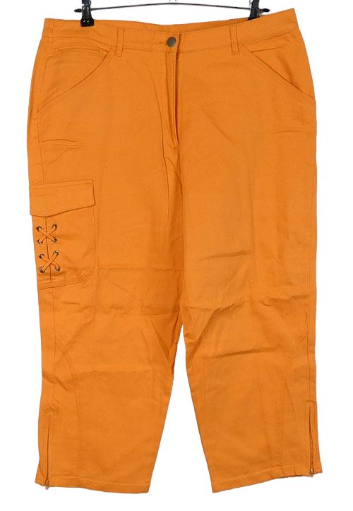 Dámske oranžové plátenné capri nohavice s výšivkou