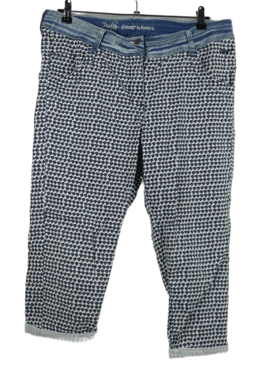Dámske tmavomodro-biele vzorované plátenné capri nohavice Kenny S.