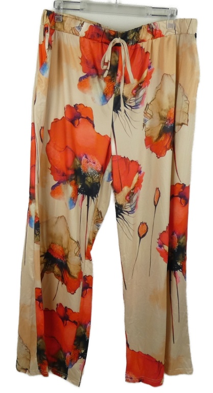 Dámske oranžové kvetované voľné é nohavice