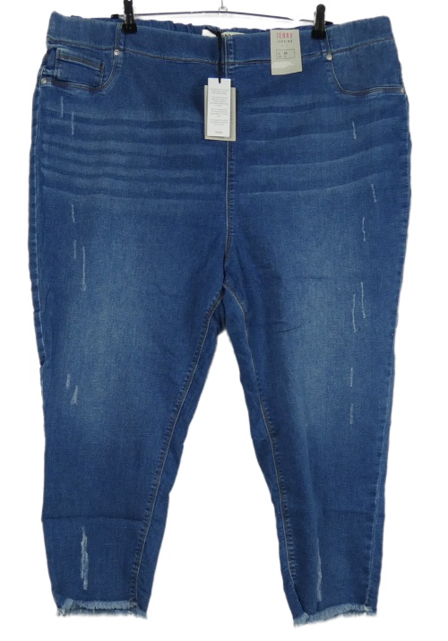 Dámske modré capri džegíny s vyšúchaním Jenny vel. 54