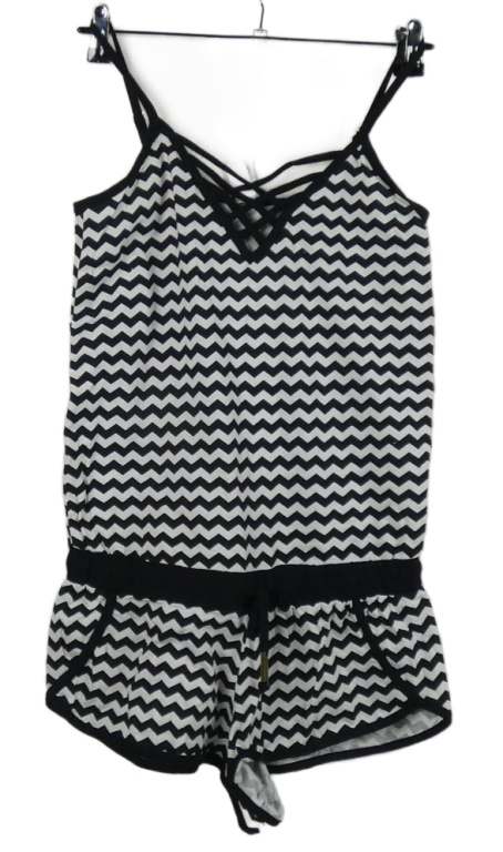 Dámsky čierno-biely vzorovaný letný overal so zkříženým výstřihem