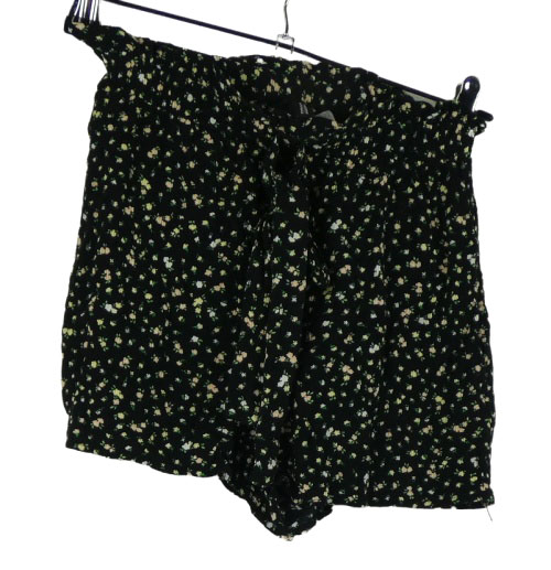 Dámske čierne kvietkovane sukňové kraťasy s opaskom H&M vel. 32