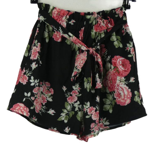 Dámske čierno-ružové kvetované sukňové kraťasy s opaskom Shein