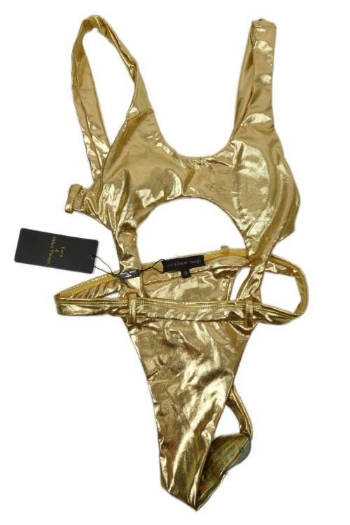 Nové - Dámske zlaté lesklé plavky s prestrihmi Love & Other Things