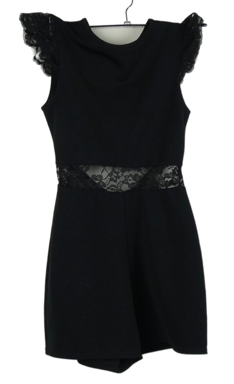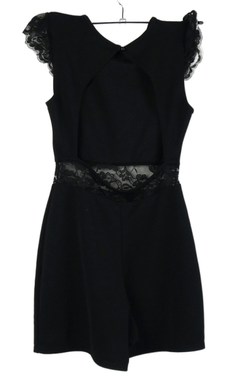 Dámsky čierny kraťasový overal s čipkou a volnými zády Boohoo