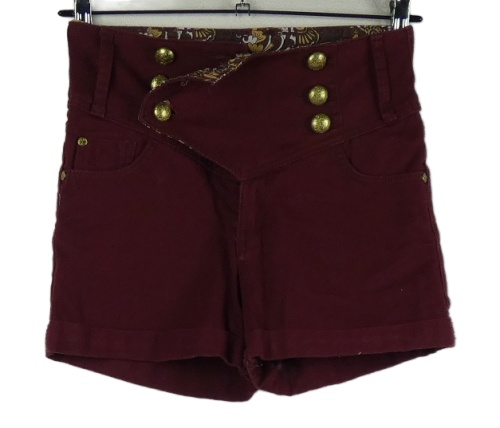 Dámske vínové rifľové kraťasy s vysokým pasom a gombíky Denim Co.