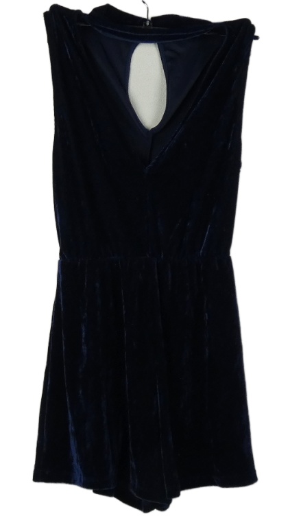 Dámsky tmavomodrý zamatový kraťasový overal s hlubokým výstřihem a chokerem Pull & Bear