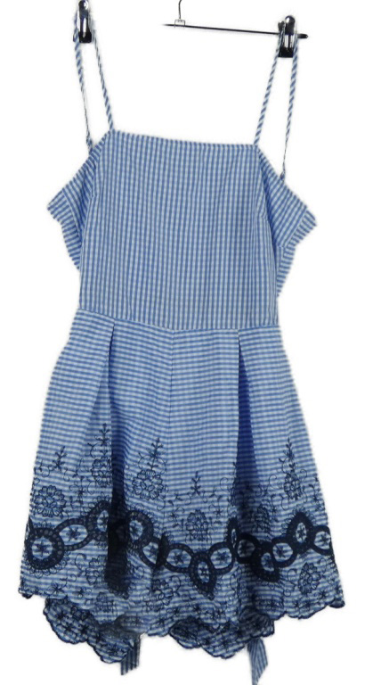Dámsky modro-biely kockovaný letný overal s výšivkou MissGuided