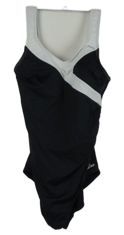 Dámske čierno-biele jednodielne plavky s pruhmi Nabaiji