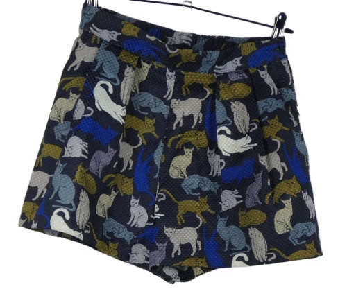 Dámske tmavomodré strukturované sukňové kraťasy s mačkami H&M