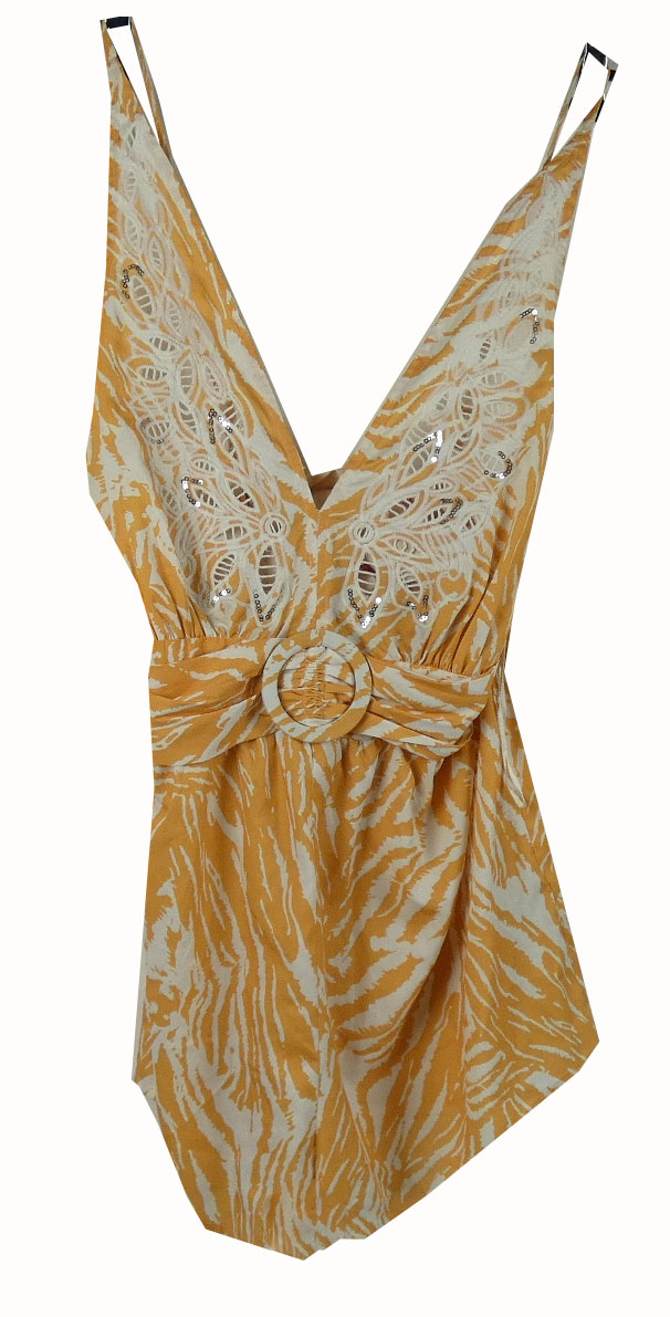 Dámsky oranžovo-biely vzorovaný letný overal s čipkou River Island