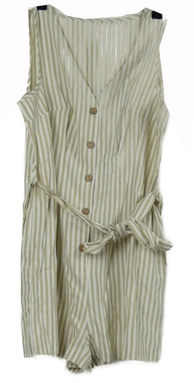 Dámsky béžovo-biely pruhovaný kraťasový overal s opaskom