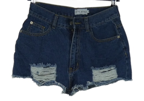 Dámske tmavomodré rifľové kraťasy s vyšúchaním a vysokým pasom In the style