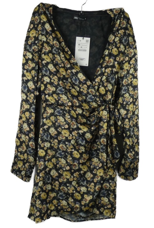Nové - Dámske čierno-žlté kvetované saténové šaty s opaskom Zara