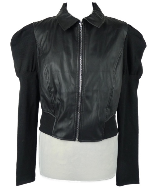 Dámska čierna koženkovo/tepláková crop bunda