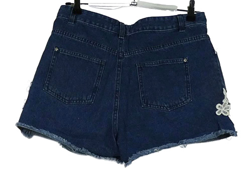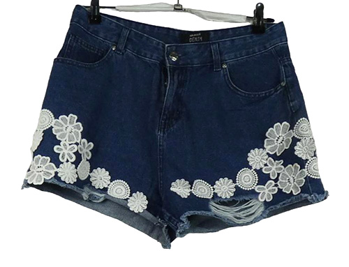 Dámske tmavomodré rifľové kraťasy s čipkovymi kvety Select