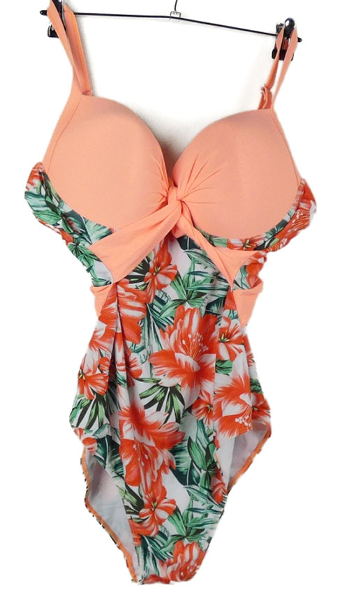 Dámske oranžovo-kvetované jednodielne plavky Shein