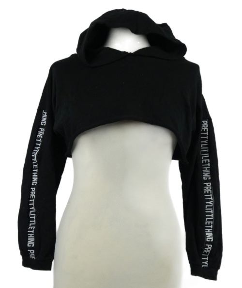 • Dámska čierna crop mikina s nápismi a kapucňou PrettyLittle Thing vel. 30