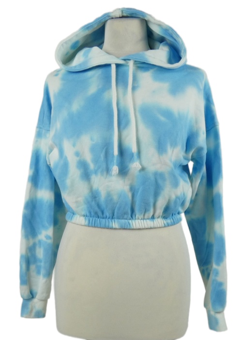 • Dámska světlemodro-biela batikovaná crop mikina s kapucňou FB Sister