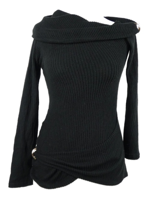 • Nové - Dámska čierna fleecová rebrovaná tunika s komínovým golierom a sponou Shein