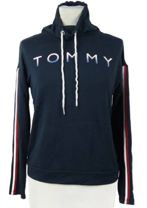 Dámska tmavomodrá mikina s logom a komínovým golierom Tommy Hilfiger