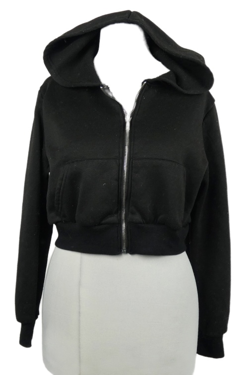 Dámska čierna crop prepínaci mikina s kapucňou Shein