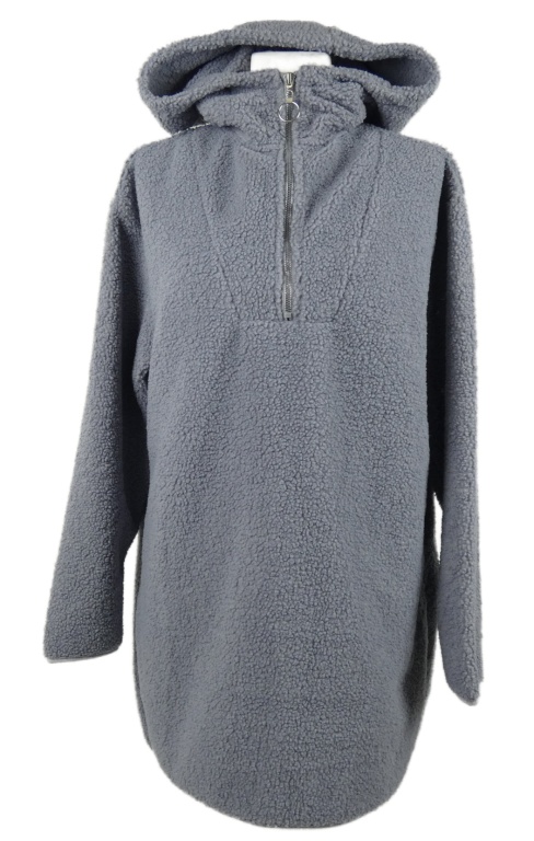 Dámska sivá huňatá oversized tunika s kapucňou Ever.me