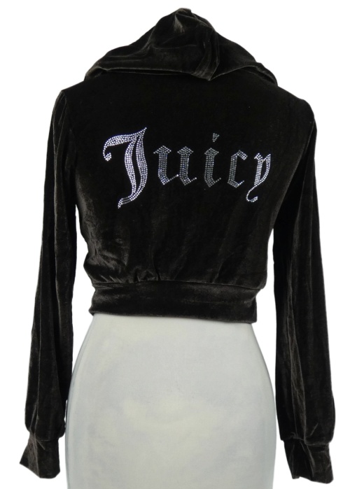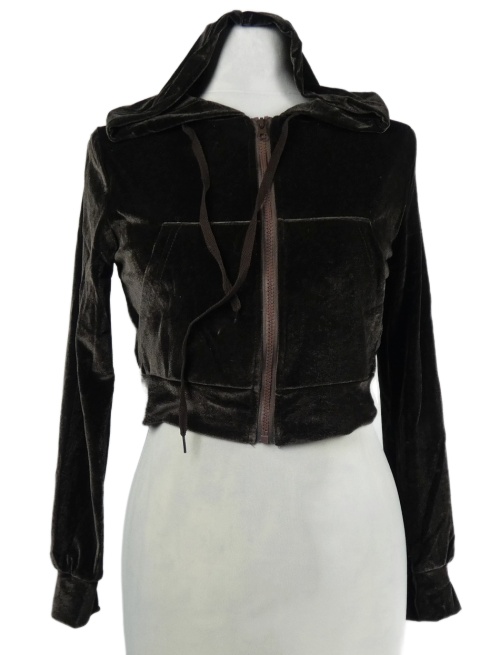 Dámska hnedá zamatová prepínaci crop mikina s kapucňou