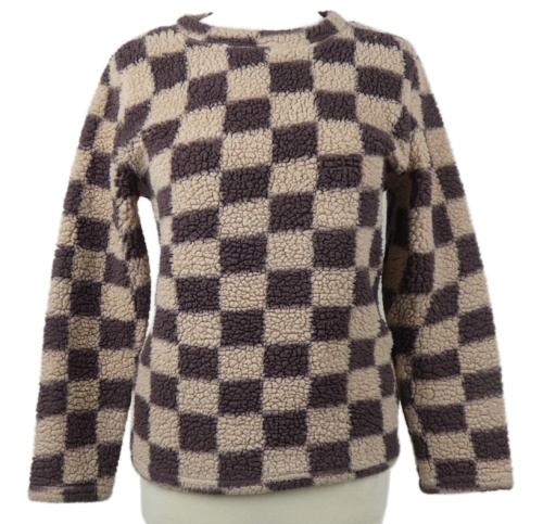 • Dámska svetloružová -vínová kockovaná huňatá mikina Primark