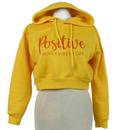 Dámska okrová crop mikina s nápisom a kapucňou Shein