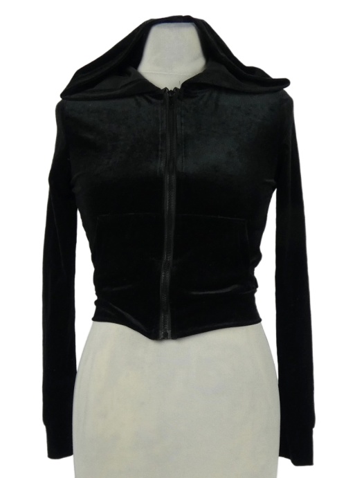 • Dámska čierna zamatová crop prepínaci mikina s kapucňou Shein