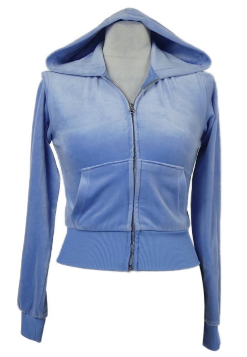 Dámska svetlomodrá zamatová prepínaci crop mikina s kapucňou H&M