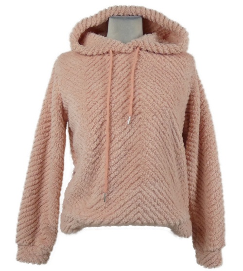 Dámska ružová chlpatá vzorovaná mikina s kapucňou Shein