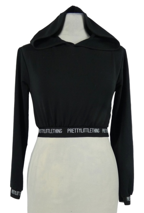 Dámska čierna športová crop mikina s logy a kapucňou PrettyLittle Thing