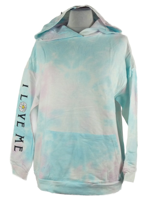 • Dámska bielo-modro-ružová batikovaná mikina s nápisom a kapucňou Zaful