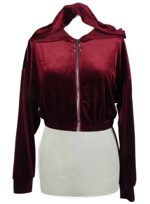 • Dámska karmínová zamatová prepínaci crop mikina s kapucňou Shein