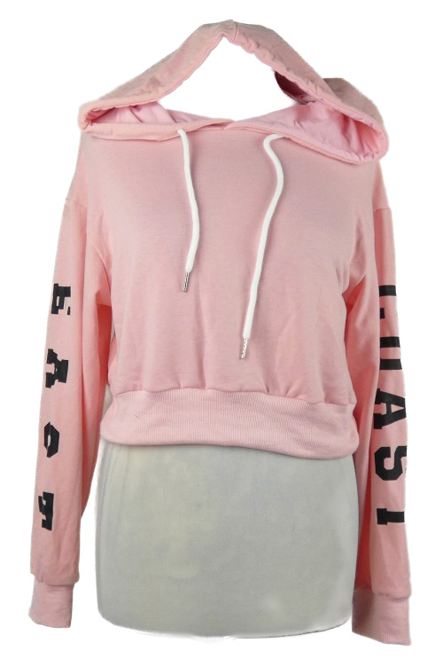 Dámska svetloružová crop mikina s náipsy a kapucňou