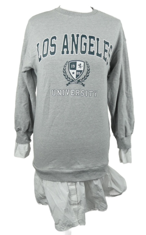 • Dámska sivá mikinová tunika s bílou halenkovou vsadkou a nápismi Tally Weijl