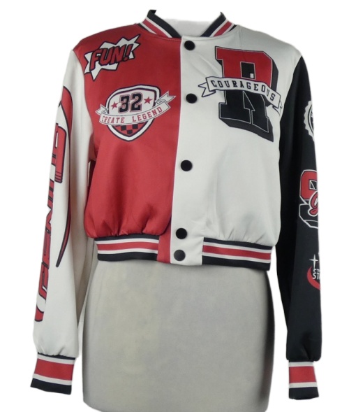 Dámska červeno-bielo-čierna baseballová crop mikina s nápismi