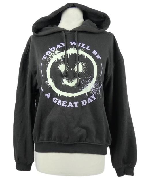 Dámska tmavosivá crop mikina so smajlíkom a kapucňou